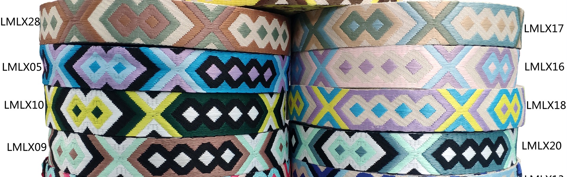 Guangzhou Liman Ribbon Factory Prodotti principali: Cinghie in Nylon/fettuccia Jacquard/fettuccia di cotone/fettuccia in poliestere/cinghia di sicurezza, fettuccia Jacquard, tessitura in poliestere, cinturino in PP, elastico